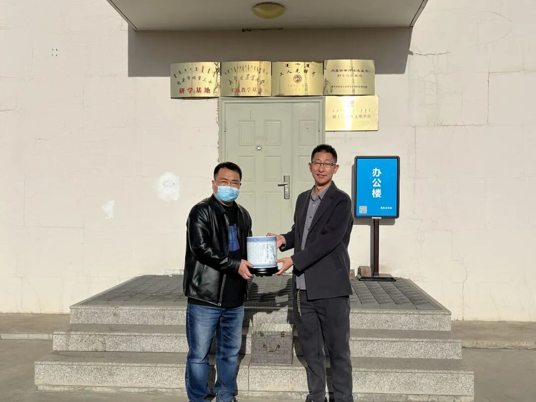 ! o* x3 P' s0 e# ~: H9 N 李培源老师向水文站赠送纪念品 4 |2 w& U# l; f1 R! T