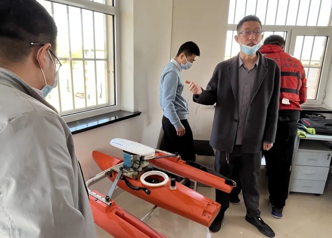 1 I ^+ I+ _7 m) Y: k1 C( B 接着,在雷站长和工作人员的带领下,地理组来到了黄委包头水文站的基本断面,水文新仪器ADCP声学多普勒流速仪正在进行日常测量作业。该仪器测量精度高,为水文工作减轻了工作量,尤其在防汛应急监测发挥了重要的作用。对比过去只能乘船测流的传统测流方法,如今先进的设备在保护河流资源、防汛抗洪等方面发挥了不可替代的作用。通过一下午的交流学习,各位老师体会到了水文工作夏不避酷暑、冬不避严寒的辛苦。水文工作看似平凡,但是一份份精准的数据为人民生命安全提供了保障,让地理组的各位老师真切地感受到了水文工作的伟大。