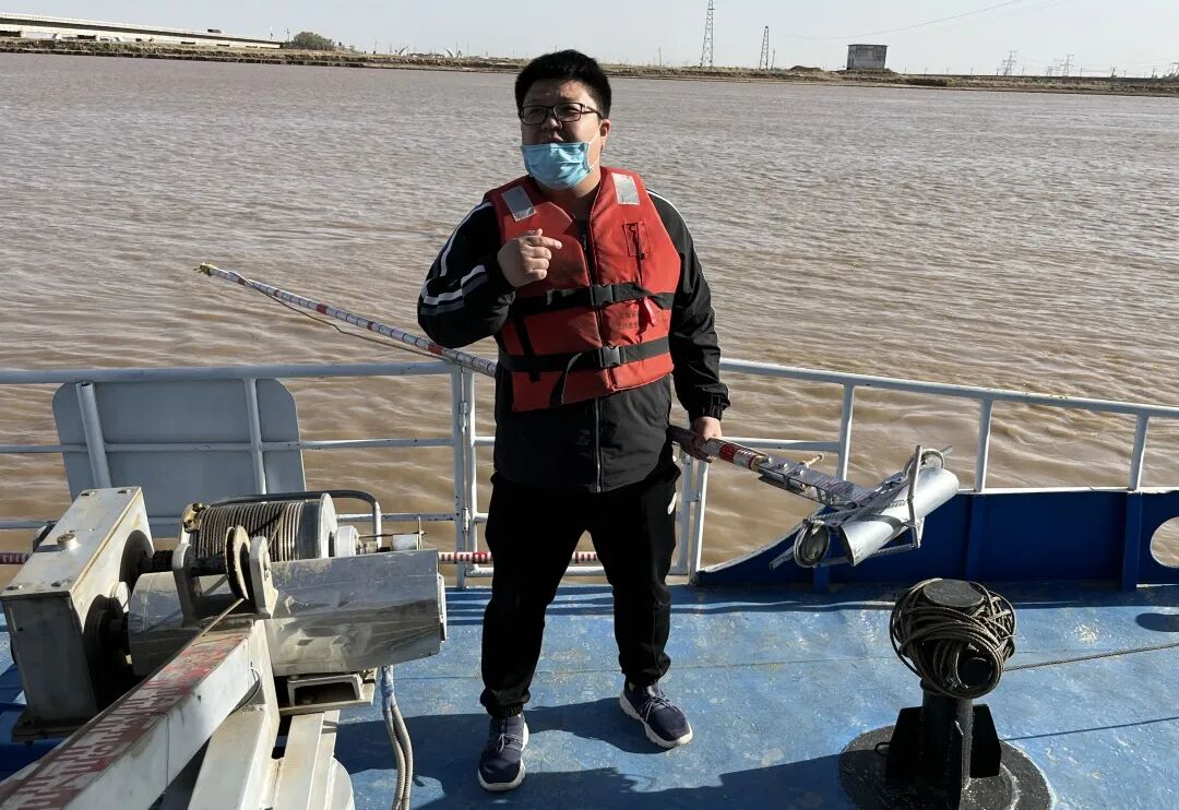 9 S. q3 J) u$ ?5 h q 工作人员介绍泥沙采集流程  & M- q0 e7 ?) d' S- P/ p( o$ A+ ]