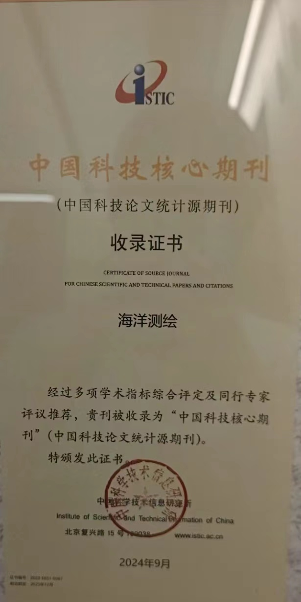 本次《海洋测绘》期刊的再次入选,体现了行业对该刊的高度认可和充分肯定,充分展现了该刊专业性、权威性和影响力,对持续提升期刊在国际科技界的影响力和话语权具有重要意义。 0 Y" u( A8 I+ t