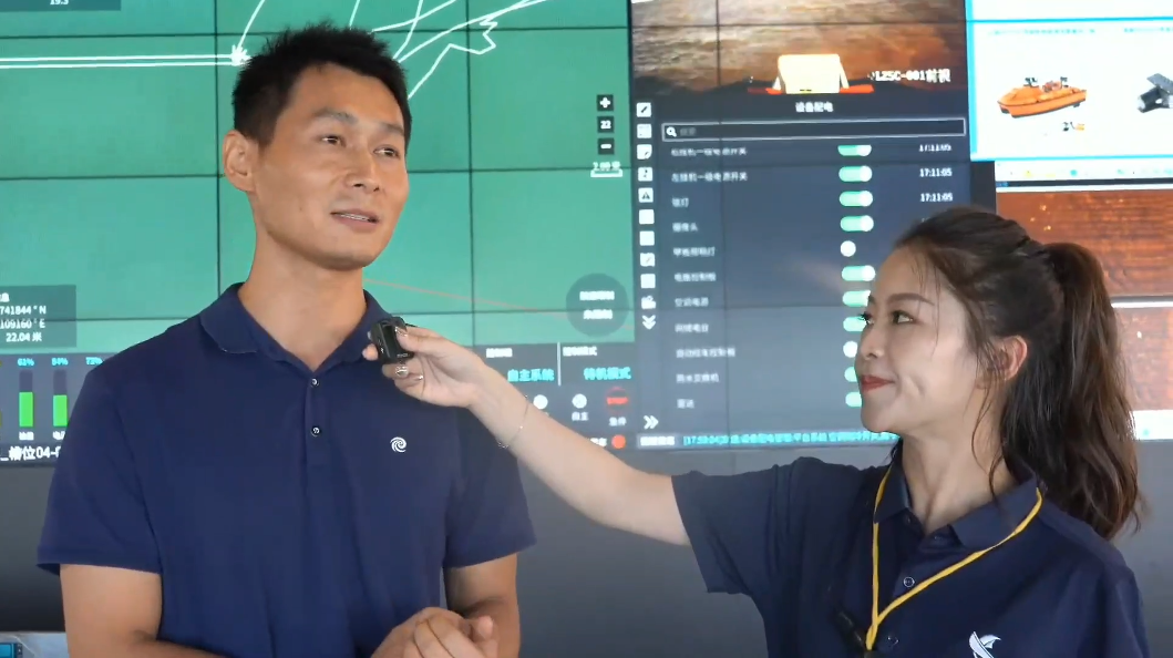 * E% T5 |+ b' { 无人船在水面上自如航行,展示着其出色的稳定性和机动性,搭载的高精度测深设备在水下精准勘测,并实时将数据传回现场展示屏幕,让嘉宾们深切感受到了云洲智能无人船与海卓同创智能化装备所带来的创新变革。 \2 q/ f+ Y4 g3 L. B5 n! D5 a8 I4 z