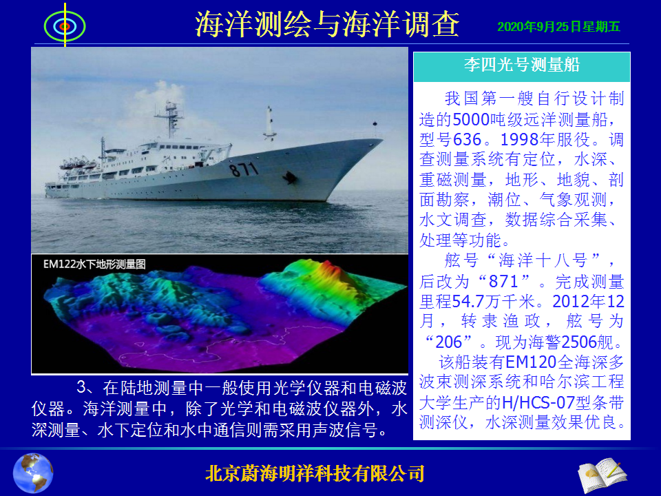 【作者简介】孙毅,男,山西人,1962年出生,1978年考入大连舰艇学院海测系,1982年毕业,曾从事海洋测量工作33年,高级工程师,现已退出现役,本系列讲座由北京蔚海明祥科技有限公司在疫情期间特别组织与策划;本文的编发得到了孙毅高工的授权,为该系列讲座的第二篇,在此,特别感谢孙毅高工对我平台的信任、支持与厚爱!北京蔚海明祥科技有限公司成立于2014年9月,蔚海明祥取自“为中国海洋事业明天翱翔”的谐音,公司致力于为海洋环境调查、海洋环境监测、海洋地质勘探、海洋测绘、卫星通信、导航、遥感等领域提供创新的技术、先进的仪器设备、快速有效的解决方案以及优质的技术服务与支持。公司具备二级保密资质、武器装备承制资格,通过了GB质量管理体系和GJB体系认证。公司承接了天津大学研制的“海燕”水下滑翔机的产业化,专注于“海燕”水下滑翔机的生产、销售和技术服务。公司自研产品有:200米、1000米、1500米、4000米、10000米海燕水下滑翔机、AUV、桥墩检测机器人、水听器、水下噪声测量系统、天通卫星通信设备、北斗卫星通信设备、美国铱星卫星通信设备、数字抛弃式温深剖面仪(800米、2000米);公司代理各种海洋测绘、海洋调查进口设备。  fill=%23FFFFFF%3E%3Crect x=249 y=126 width=1 height=1%3E%3C/rect%3E%3C/g%3E%3C/g%3E%3C/svg%3E)  fill=%23FFFFFF%3E%3Crect x=249 y=126 width=1 height=1%3E%3C/rect%3E%3C/g%3E%3C/g%3E%3C/svg%3E) - V2 `. [3 h* C% j" F5 Z