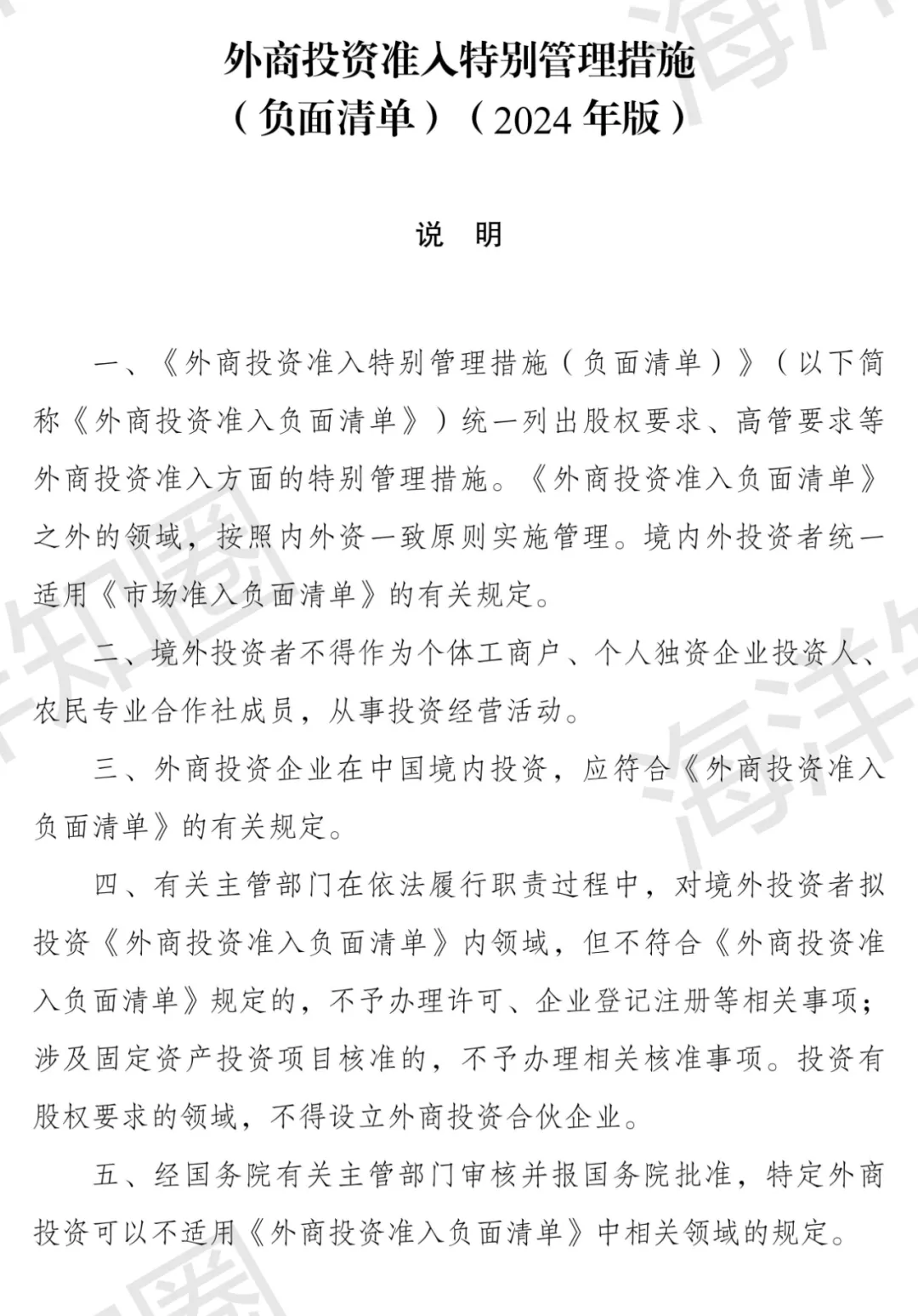 点击左下“阅读原文”查看:国家发展改革委 商务部令2024年第23号 外商投资准入特别管理措施(负面清单)(2024年版) . [4 W3 G" z" B) C0 y2 _