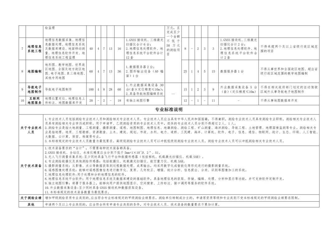 测绘资质分类分级标准