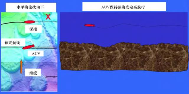 图4 AUV保持航线和高度控制的优势 . I& \5 W4 B% |" B