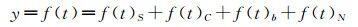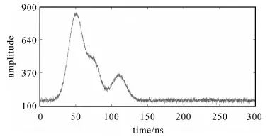 0 y1 \: m( a" ] L% { x) [1 T 本文利用小波软阈值去噪和EMD去噪法,研究两种方法最优参数选择,以及找到联合去噪效果的最优方案,旨在进一步提高去噪精度。由于仿真数据能够放大原始回波信号传播过程中的特点,对去噪算法效果更为敏感,方便对去噪算法进行对比研究,因此先利用仿真数据进行信号的去噪算法比较研究,再用实测数据进行去噪拟合,验证算法对数据的实际效果。 1 波形特征及信号模型构建 1.1 机载激光测深波形特征机载激光回波信号由水面反射回波、水体散射回波、水底反射回波以及噪声4部分组成[23-24],因此机载激光回波信号可表示为4部分信号的叠加。用式(1)表示为 (1)式中,f(t)S表示水面反射回波;f(t)C表示水体散射回波;f(t)b表示水底反射回波;f(t)N表示噪声;y为t时刻回波的振幅。由于数据处理中提取的为第2段原始波形,即海表回波和海底回波的完整回波波形,不包含发射器的出光波形,介质不均匀主要来自水体的影响,实际会造成回波波形波宽变宽、面积增大等,f(t)N主要包括背景噪声和传感器内部噪声,机载激光测深作业限于50 m以上浅海域,测量精度要求较高,因此,需要对原始波形数据在保留有效回波信号的基础上进行最大限度的去噪处理。1.2 信号模型构建一般认为水面反射回波服从高斯函数,水底反射如果在平坦浅海区域也可近似看作服从高斯函数,而水体反射回波服从B样条函数。文献[25]研究了高斯函数与B样条函数之间的相似关系,建立了如下逼近公式 (2)因此,可以将无误差仿真数据进行如下表示 (3)式中,μs、μC、μb分别为水面反射、水体散射、水底反射回波波形的对称轴;σS、σb分别为水面反射、水底反射回波波形的半幅波宽。水体反射回波信号用三次B样条近似函数的变形函数来代替,最后将初始仿真信号加入高斯随机噪声得到试验仿真数据。本文采用采样间隔为1 ns,采样点数为300进行去噪仿真分析,加入噪声后得到的仿真信号如图 1所示。 图 1 加入噪声的仿真数据 Fig. 1 The simulation data with noise