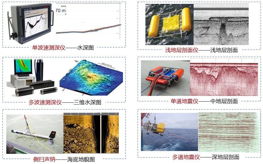 华东院引进了一系列先进的海洋测量及物探设备。主要包括水深测量仪(单波束测深仪、多波束测深系统)、浅地层剖面仪、侧扫声呐、海洋磁力仪。相关设备可以进行水深测量,得到高精度海底地貌图,还可以通过物探设备勘测并绘制不同深度的海底地层剖面。 * k! r) I" g5 G8 \