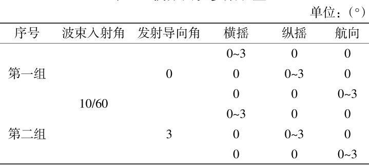 ) W I |, X2 C" u- q- [6 n; |: [ 结合两模型,此时,在横摇和发射导向角的共同作用下,单位波束入射向量计算偏差值如下。 ; X5 b8 p% D( f6 L" V6 E! }