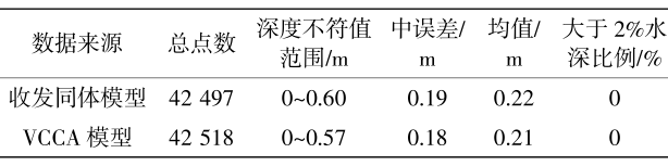 图8 收发同体模型与VCCA模型水深计算差值