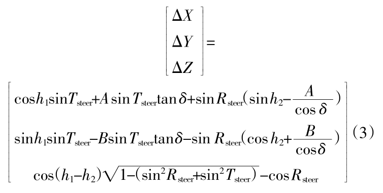 结合两模型,在收发时刻航向和发射导向角的共同影响下,单位波束入射向量计算偏差值如下(为简化书写,部分表达式以A、B代替)。