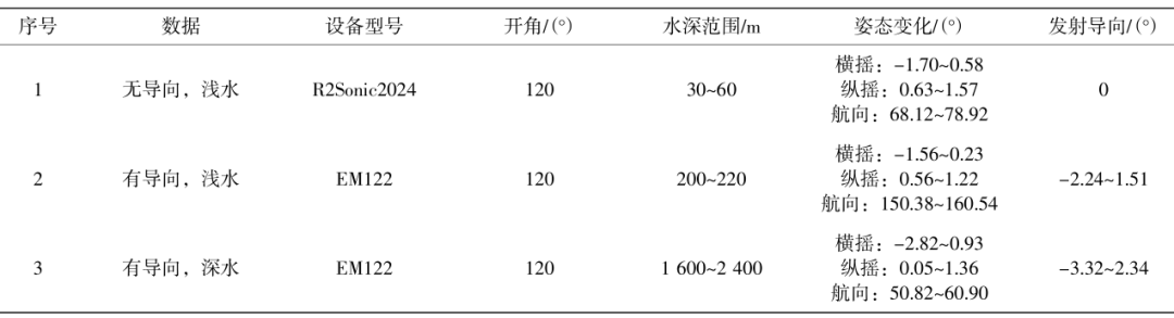 ⑸在数据采集过程中,应根据实际情况调整船速以及开角,当姿态变化明显时可适当降低船速,减小开角,以减少测点间距,同时保证航向和船艏向差别控制在小范围之内。