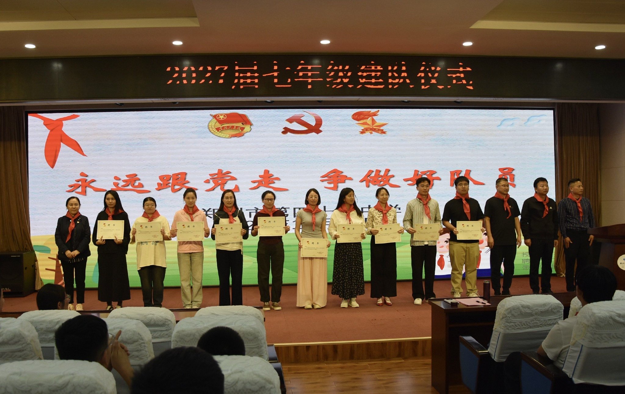 * O! y! O4 U1 x4 v$ a$ K 中原网讯(王煜枫 通讯员 董运举)为庆祝少先队建队75周年,激发少先队员的爱国热情,引导少先队员传承红色基因,成长为堪当民族复兴大任的时代新人,10月14日下午,郑州市第四十二中学少先队建队仪式在六楼报告厅举行,学校党总支书记、校长于红莲,副校长孙青山、黄涛、王子,七年级中队辅导员及全体少先队员参加了本次活动。 8 K% r- g5 U% S