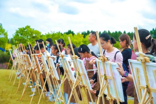 大家漫步在如梦似幻的粉黛乱子草园,花海如云雾与天空交相辉映,构成一幅浪漫又奇幻的景象。小朋友们还化身为小画家,用色彩勾勒出粉黛乱子草园的美景。 3 Z5 |: v! P2 a: h