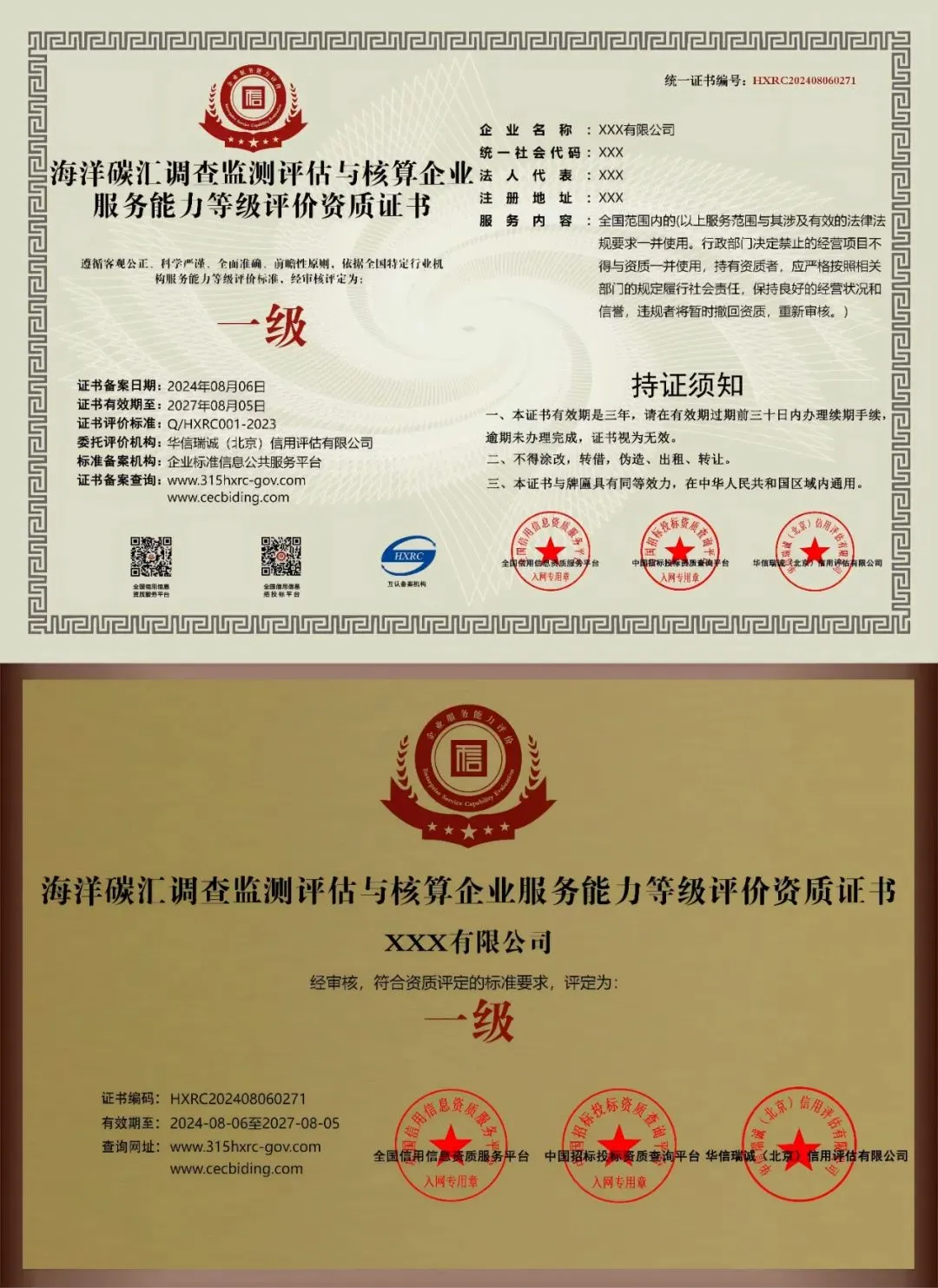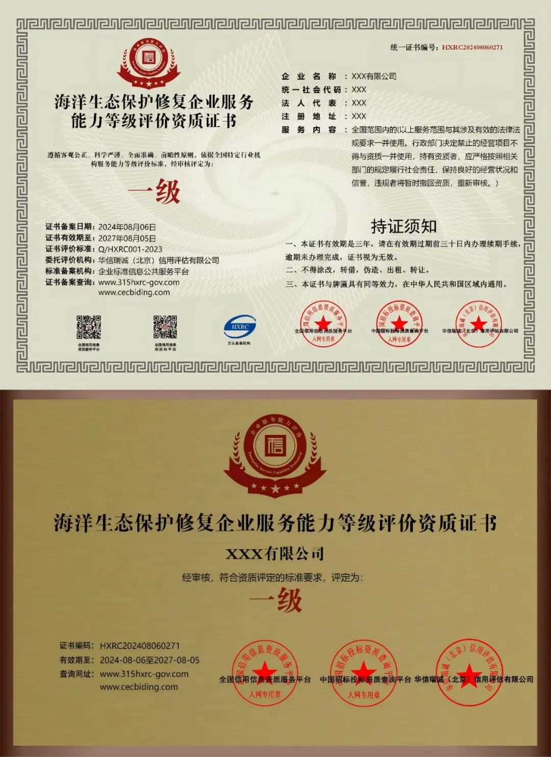 & X! {. l! u- p *参加三人以上(含三人)送企业能力等级评价资质证书、【海洋生态保护修复企业服务能力等级评价资质证书 或 海洋碳汇调查监测评估与核算企业服务能力等级评价资质证书(二选一)】三网查询