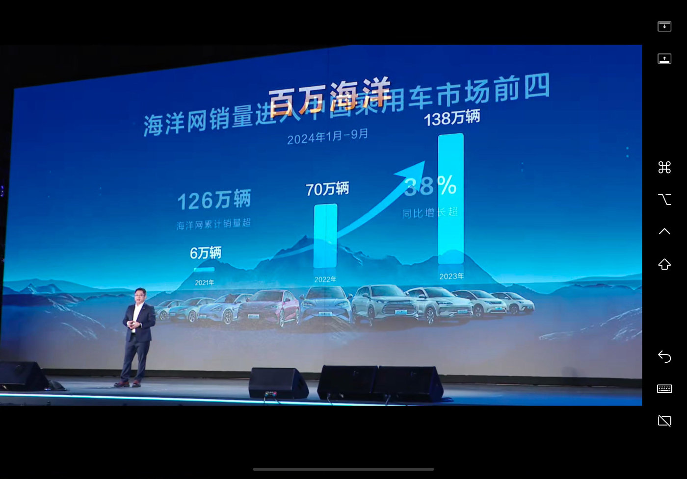 ( F- ~5 y- ^. Z 在比亚迪即将迎来第1000万辆新能源汽车下线的时间节点,仅三岁的海洋网也实现了火箭般的发展速度:3年销量超过350万辆,今年1-10月销量达到149万辆,仅将海洋网单独列出可以进入中国乘用车市场前四。旗下涌现数款神车,百万神车宋PLUS DM-i连续35个月霸榜插混SUV销冠。