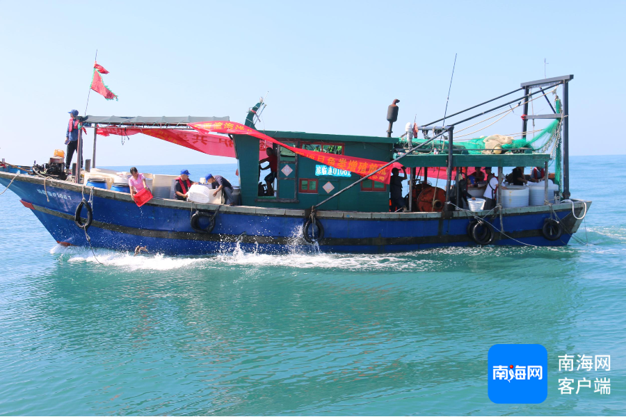 c* {2 c4 g4 {3 j: x 10月31日,三亚增殖放流14.5万尾鱼,维护海洋生物多样性。记者 利声富 摄