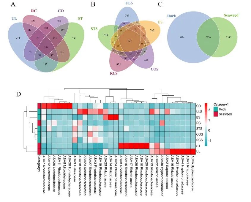 ! R. `% G5 i( G/ { 在宏观生态环境监测的基础上,探究礁区微生物群落结构特征将有助于深入了解人工鱼礁的生态效应。通过比较人工鱼礁不同材质、岩礁附着的优势大型海藻表面的微生物群落结构,结合环境因子,解析微生物群落结构和多样性动态变化特征、微生物群落之间的相互作用,为人工鱼礁建设生态效果评估提供了理论依据。上述研究成果以“Comparison studies of epiphytic microbial communities on four macroalgae and their rocky substrates”、“Comparative Analysis of the Ecological Succession of Microbial Communities on Two Artificial Reef Materials”为题,分别发表在Marine Pollution Bulletin和Microorganisms。实验师郭战胜为第一作者,梁振林教授和姜昭阳教授为并列通讯作者。  上述研究工作得到了国家重点研发计划 (2016YFE0205700) 、国家自然科学基金 (42176150 和41771544)等的资助。本文来源:山东大学(威海)
