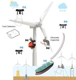 瞄准新蓝海市场超前布局,打造海上风电自主化、集约化、智慧化运维装备体系,研发可精准图像识别的无人机、拥有移动感知能力的爬壁机器人、结合数字孪生技术的数智化运维平台与调度系统等产品,形成“空地海”全方位、立体化智能监测运维体系。 ) ?$ r! U" Y8 B: C8 E2 _1 U+ H! q6 P