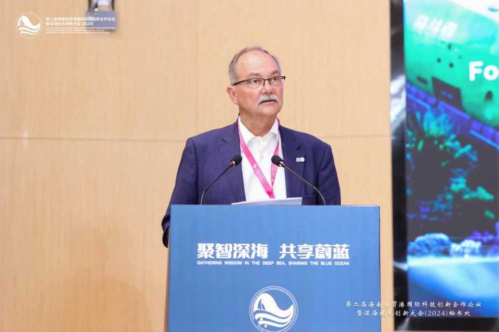 - a4 m- {1 P8 i 8月23日上午,第二届海南自贸港国际科技创新合作论坛暨深海技术创新大会在海南三亚崖州湾科技城开幕。原联合国教科文组织自然科学部生态与地球科学司司长、联合国教科文组织生物多样性致力可持续发展教席教授米格尔·克卢塞纳-戈特(Miguel Clusener-Godt)分享了联合国科技创新助力蓝色经济与海岸带区域的可持续发展的最新进展。 原联合国教科文组织自然科学部生态与地球科学司司长、联合国教科文组织生物多样性致力可持续发展教席教授米格尔·克卢塞纳-戈特(Miguel Clusener-Godt)发言。% ~# v( g u; T6 c+ V5 g2 H! W