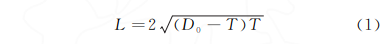 式中 为最大透照(穿透)厚度,mm;D0为管外径,mm;T为管壁厚,mm。