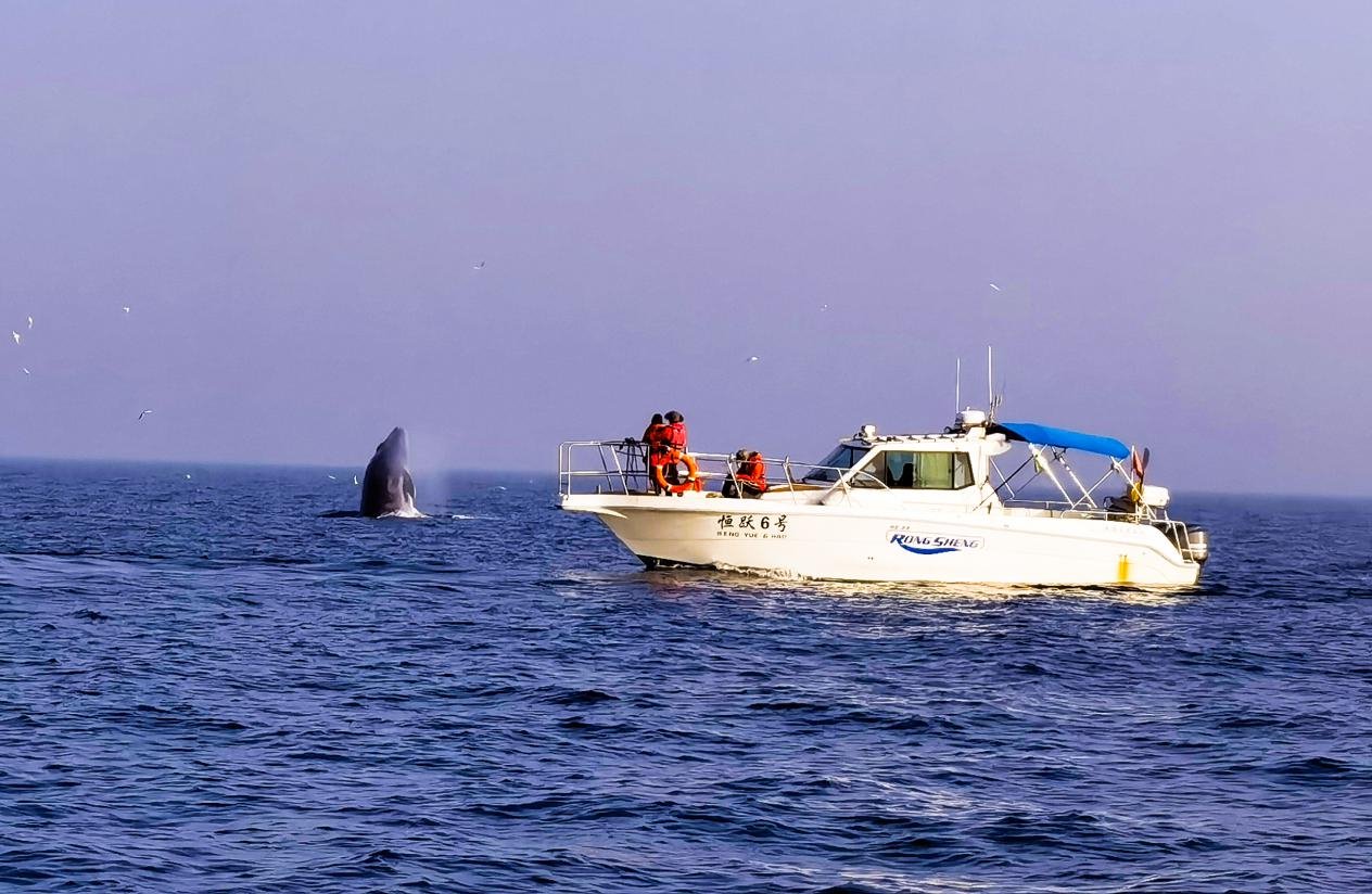 图为工作人员在涠洲岛对布氏鲸种群进行监测。 ! ^6 |) R$ }1 H9 A/ Z0 u