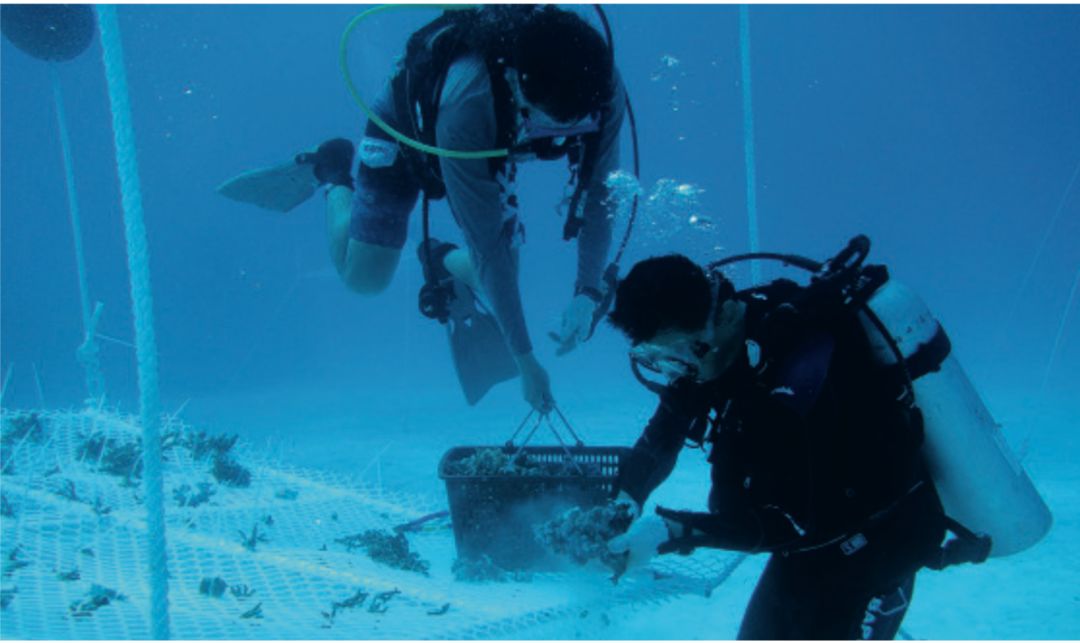 育苗结束后,还需将已“成年”的珊瑚移植到礁体上,才算完成全部“种植”工作。