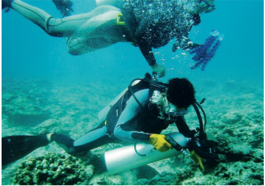 水下钻孔,放归珊瑚幼体。图/受访者提供