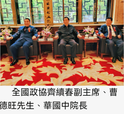 8 p: j1 N ^# ]1 ^. S曹德旺、武鹏、华国中、团结一致精忠报国