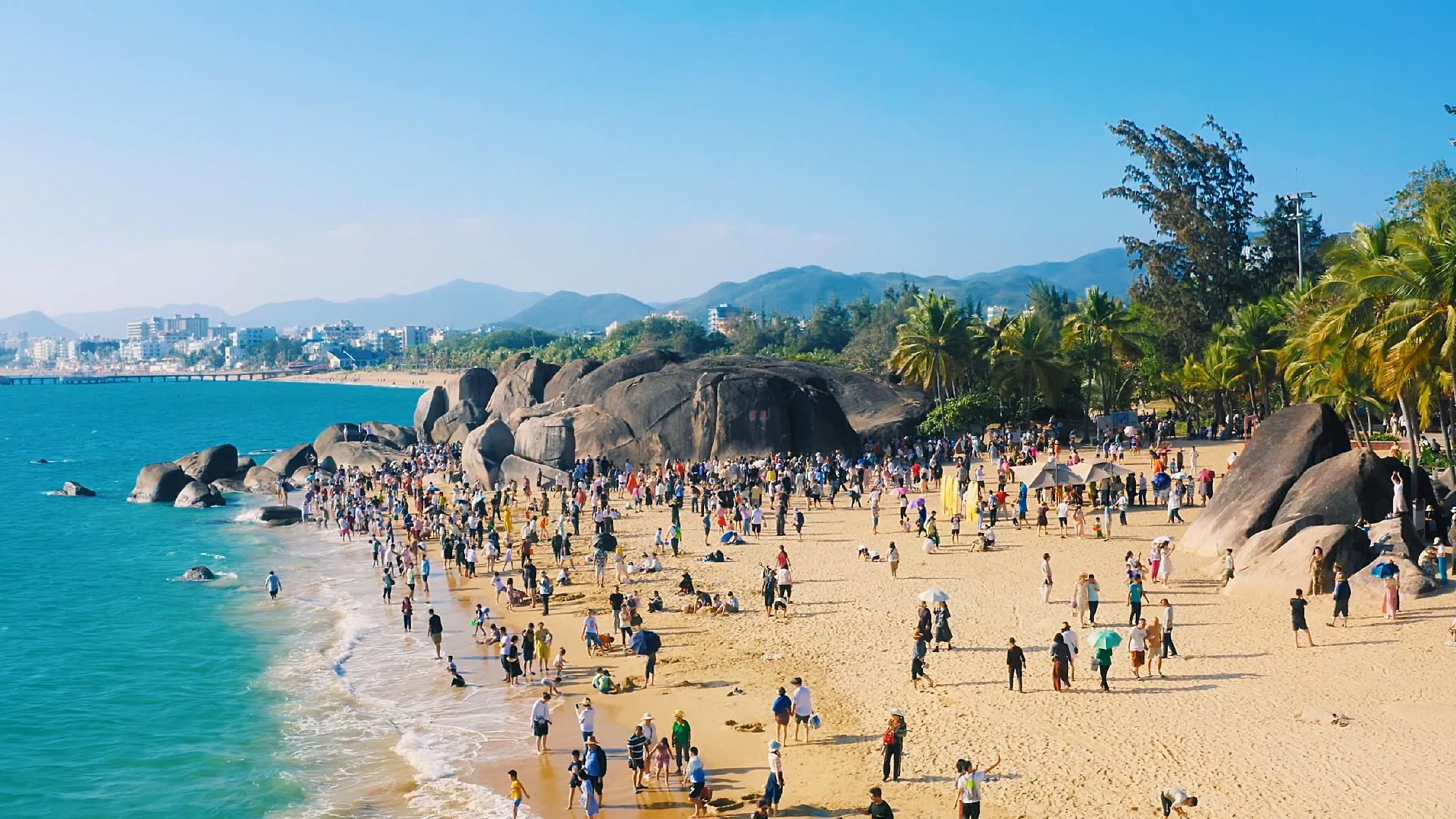 三亚天涯海角游览区内络绎不绝的游客。三亚旅发公司供图