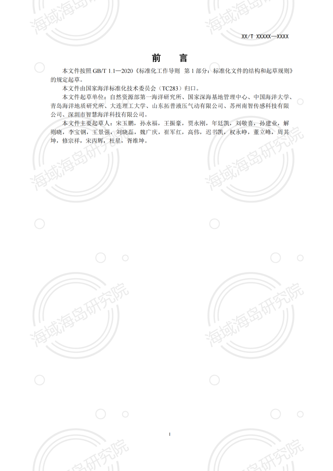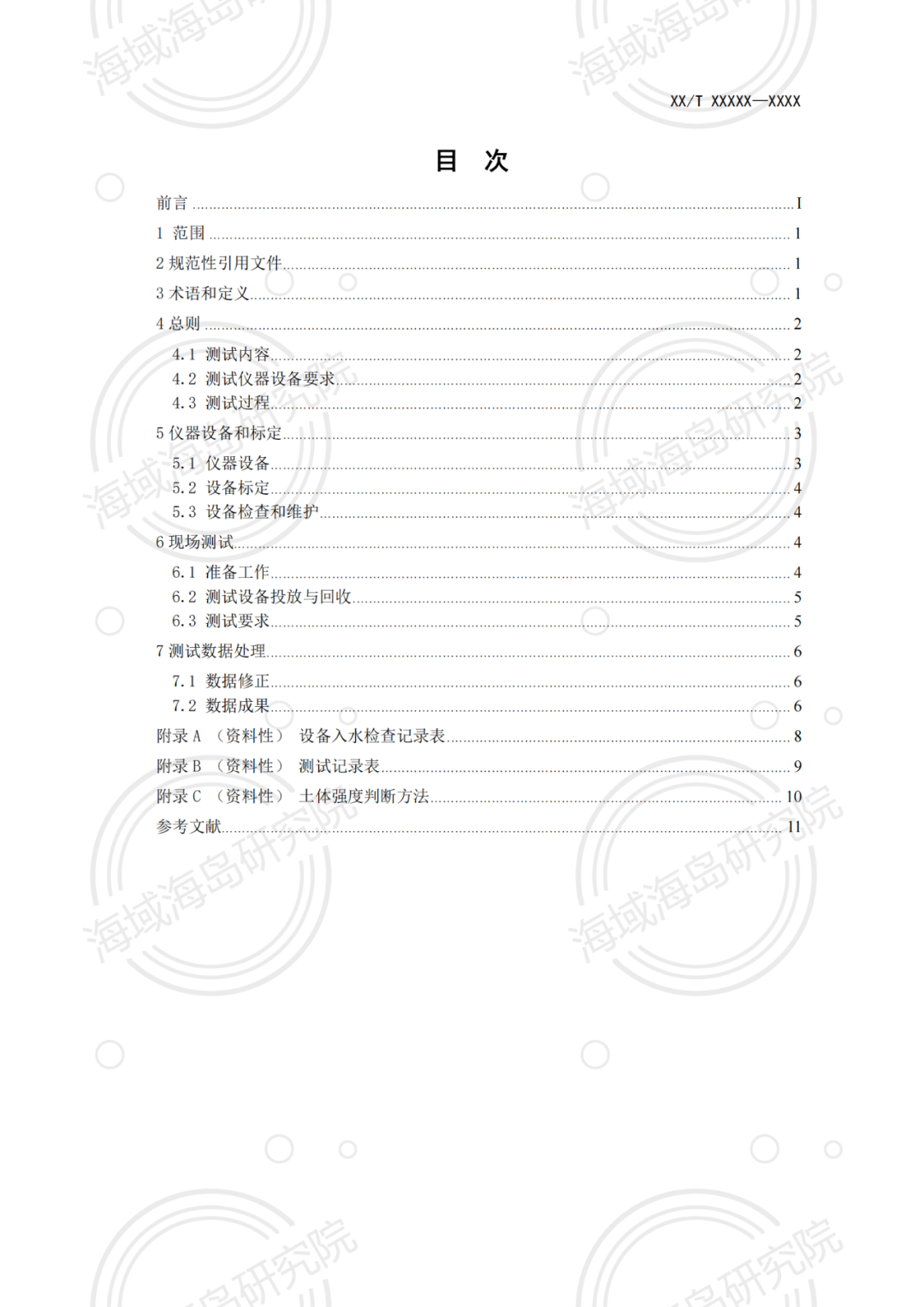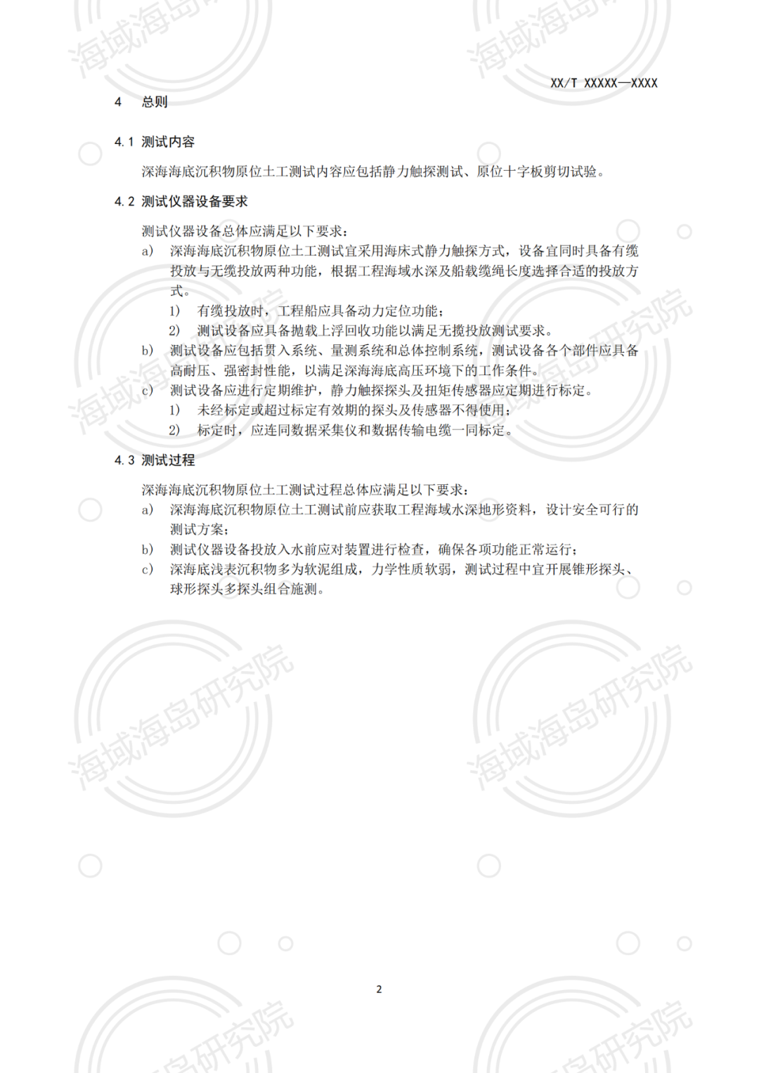 , G+ C( O2 f) q: v y 关于《深海海底沉积物原位土工测试规程》海洋行业标准征求意见的函各有关单位:《深海海底沉积物原位土工测试规程》海洋行业标准(计划项目编号:202222008)现已完成标准征求意见稿。根据《自然资源标准化管理办法》的有关规定,现公开征求意见。如有意见,请在平台在线填写反馈意见,或将意见以电子邮件形式反馈,截止时间为2024年12月4日。逾期不回复,视为无意见。感谢大力支持!联 系 人:吴春芳联系电话:13606516508传 真:0571-81963355电子邮箱:afang333@sio.org.cn下载:《深海海底沉积物原位土工测试规程》(征求意见稿).pdf《深海海底沉积物原位土工测试规程》(征求意见稿)编制说明.pdf意见反馈表.docx海洋调查观测监测分技术委员会2024年11月05日8 I* @. ]1 e& S) L& H3 v& p