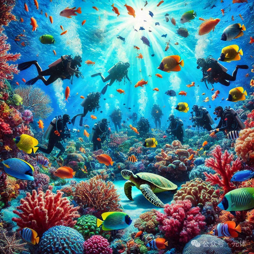 # j2 p) k3 |" p- _+ y# u& |4 A 深海潜水,这是一项充满无尽魅力与挑战的极限运动。它像是一把神奇的钥匙,为人类打开了通往神秘海底世界的大门,让我们得以窥探到一个常人难以想象的奇妙领域。在那深邃的海底,隐藏着令人叹为观止的壮丽景观和古老而神秘的生物群落。五彩斑斓的珊瑚礁宛如一座座海底森林,形态各异,有的像鹿角般枝枝杈杈,有的像蘑菇一样圆润饱满,它们在海水中的微光映照下闪烁着迷人的光彩;各种鱼类穿梭其中,它们或色彩绚丽,如流动的宝石,或身形奇特,似来自外太空的精灵,这些灵动的水下精灵们展示着令人难以置信的生命力和适应能力。 - j( h3 p: S8 {, [/ v w' p# W9 N# W2 [