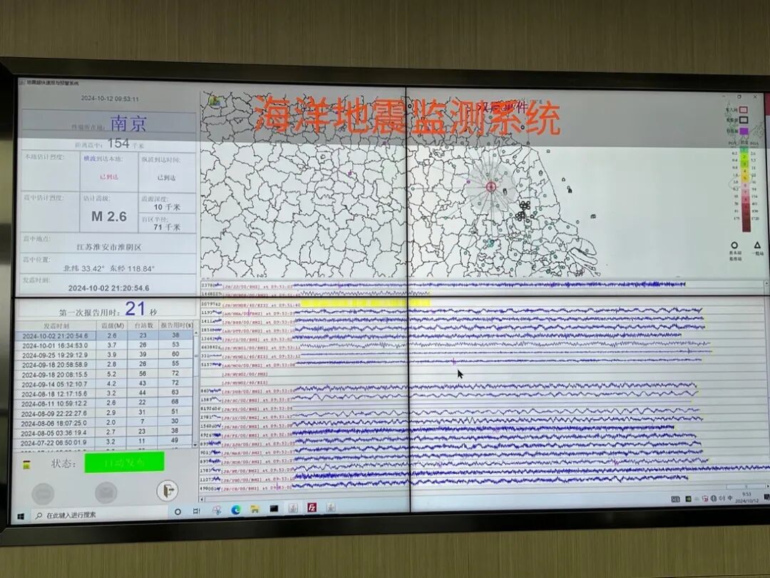 在相关企业和政府的大力支持下,2022年至今,江苏省地震局已经建成了7个海上风电平台地震监测站点,与原有的3个海岛观测站点一起组成了海洋地震监测台网,使海域地震定位精度由四类提升至二类。