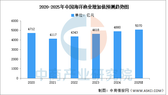 ! d$ `- C& K" K- G 2024年实现增加值8194亿元,比上年增长7.4%。海洋交通运输业保持较快增长,外需回升带动集装箱市场需求旺盛,海运贸易航线网络不断织密,海洋货物周转量比上年增长9.5%,港口服务能力进一步增强。中商产业研究院分析师预测,2025年我国海洋交通运输业将达8840亿元。 数据来源:自然资源部、中商产业研究院整理5.海洋渔业 & p/ h: X* z' D! F# v4 ]& e0 u9 i