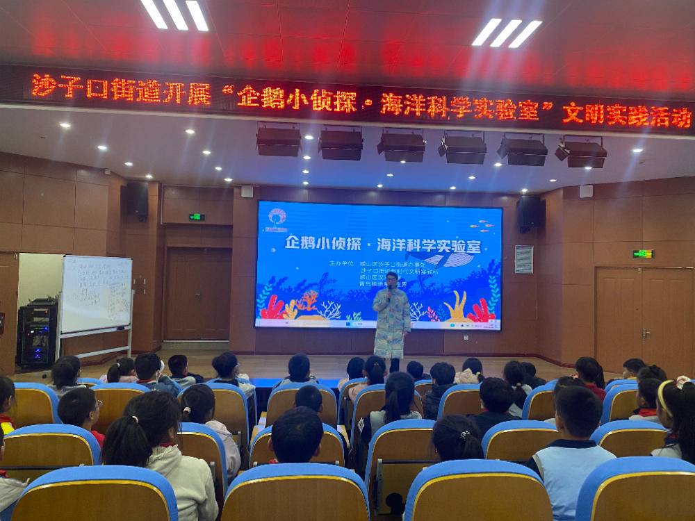 $ K8 e2 _. R; v2 p 11月25日,一场别开生面的“企鹅小侦探·海洋科学实验室”文明实践活动在沙子口街道辖区汉河小学欢乐举行。此次活动由沙子口街道办事处、沙子口街道新时代文明实践所、青岛极地海洋世界以及汉河小学联合主办,旨在为孩子们打开海洋科学知识的大门,打造具有沙子口街道特色的海洋科普品牌课堂。 + z0 N: [" T" W, \% e