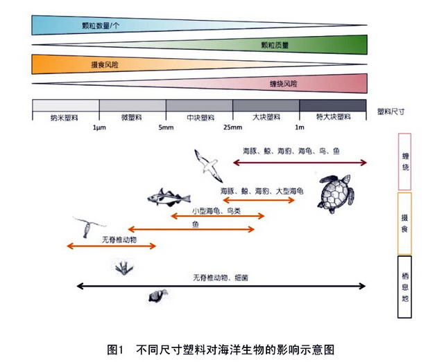 ! v% C6 L' Q# \" M/ `: H C 不同尺寸塑料对海洋生物的影响示意图。资料来源:生态环境部 8 x2 m2 i. T( G