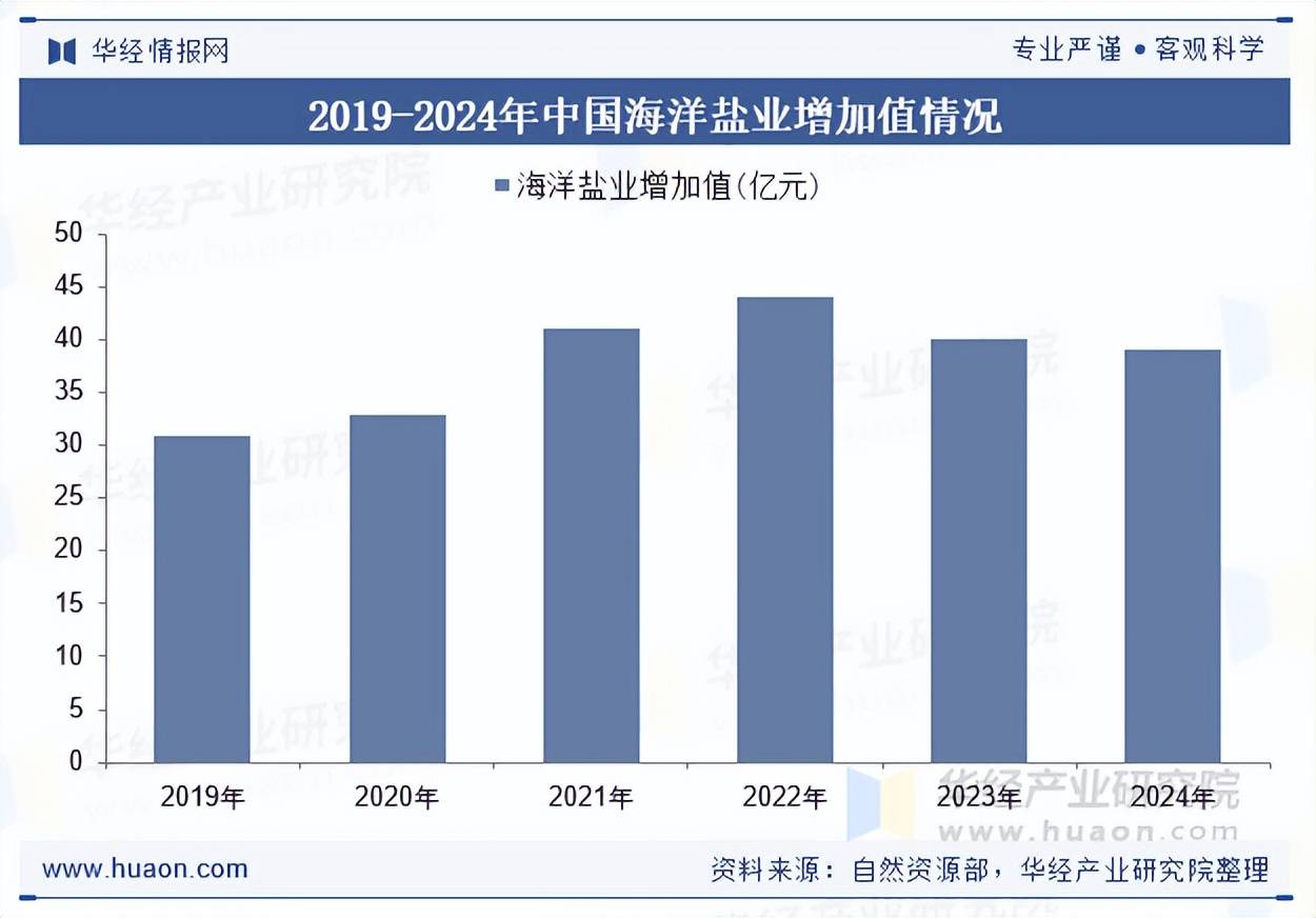 ; M5 e+ n, @3 w5 ~1 U 整体而言,中国拥有丰富的盐业资源主要以海盐、井矿盐和湖盐资源为主,海盐主要产区集中在长江以北地区,北方盐区产量快速上升,逐渐成为全国海盐生产中心区域。近年,中国海洋盐业经历了从淋卤煎盐、淋卤晒盐到晒卤晒盐的三个典型阶段,海盐由于生产成本较低, 是化工用盐的首选,但随着盐田面积的逐渐减少,海盐产量呈现下降趋势。2024年,因受天气影响和产业结构调整影响,海盐产量有所下降,中国海洋盐业全年实现增加值39亿元,比上年下降1.2%。 % b& x# _- i+ a) Q" L