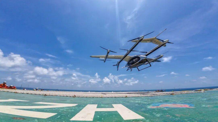 + y* G6 {6 z; B# K 我国自主研发的吨级eVTOL“凯瑞鸥” 图源:中国海油深圳分公司