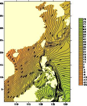 5 r* K7 n* g' i9 E3 z, Y 图6 中国近海大地水准面 ) n7 d% [. v% K+ c