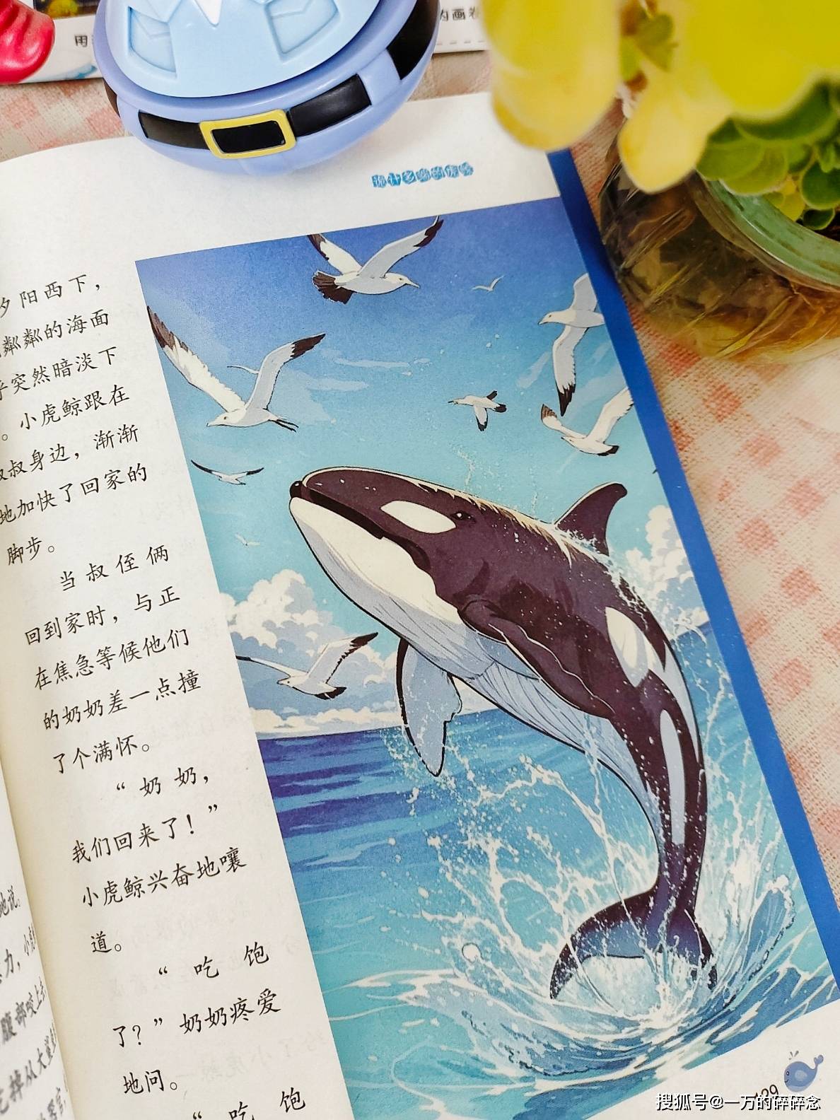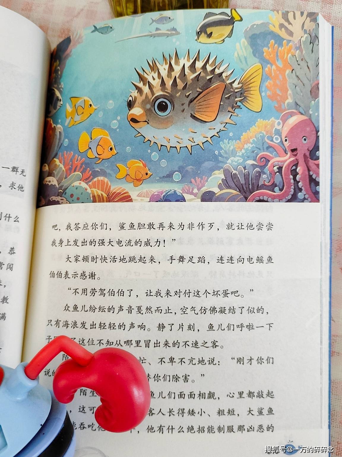 《喧闹的海洋》这个故事,简直是打开了我新世界的大门!看完这个故事,我才知道,原来青鱼会发出像小鸟叫声一样的“叽叽”声;鲶鱼会像小蜜蜂一样地“嗡嗡”叫;箱鱼的叫声则像小狗一样“汪汪汪”;驼背鳟鱼会敲着小鼓寻找自己的伙伴;如果听到鲂鮄鱼“哇哇”地尖叫,那就赶紧躲开吧,说明它的周围一定有凶猛的鱼类! / p# m" a; X( _8 _9 F7 X