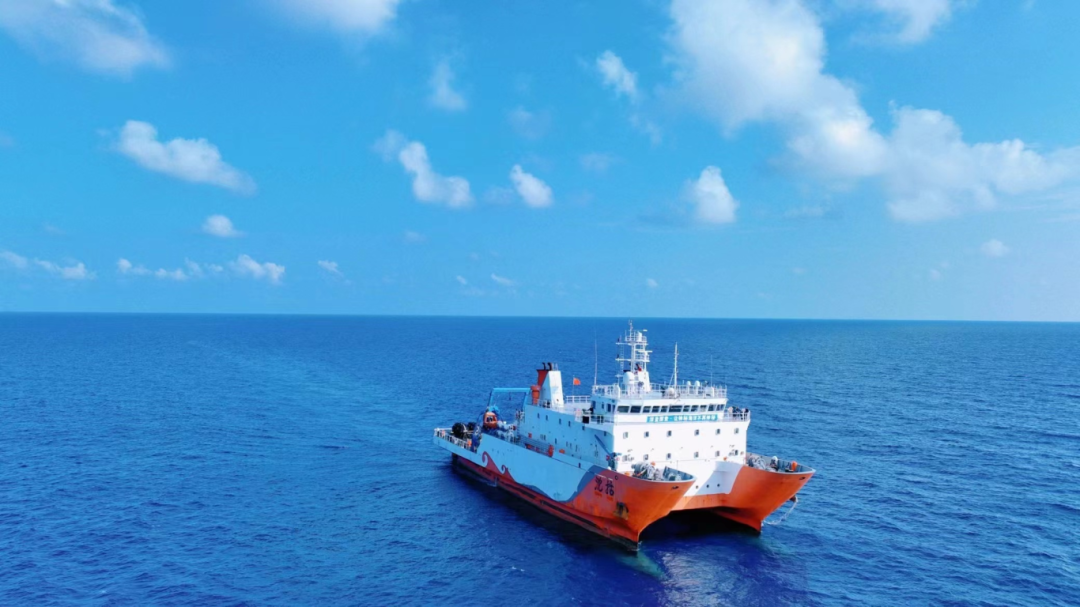 ! r$ N# h; {: |# j “沈括”号是由中船重工702研究所设计、泰和海洋科技集团投资建造的多功能深远海科学调查船,总长63米,型宽23米,满载排水量2194吨,可搭载60人执行多学科交叉海洋科研任务。该船于2018年4月下水,首航即参与马里亚纳海沟科考,完成了“彩虹鱼”万米级载人潜水器系统试验、第二代着陆器海试及浮标布放等任务。