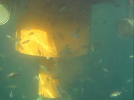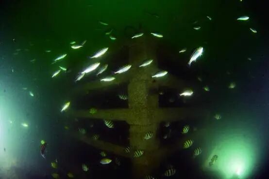 人工鱼礁集鱼 图片来源:浙江省海洋水产研究所