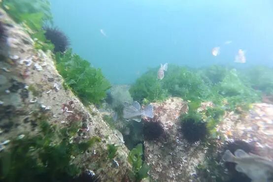 人工鱼礁区藻场藻类旺盛及鱼类增多 图片来源:大连海洋牧场研究院