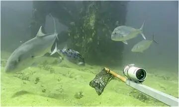 3 P5 B; A' N* f. ?7 ] 鱼类的音响驯化 图片来源:大连海洋牧场研究院