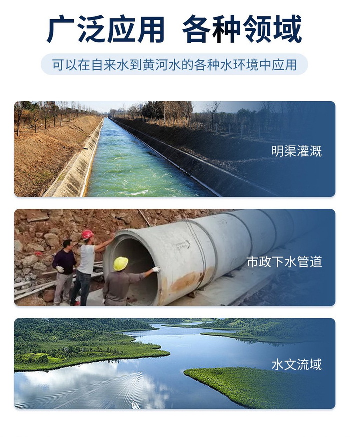 ; U+ {9 ?, N% ^ 产品根据超声多普勒效应原理测量流速,并可通过压力传感器测量水位和温度传感器测得水体温度。壳体采用PVC塑料能够有效防水密封。壳体长25厘米、高度3厘米、宽度7厘米。可以在明渠和比较大的管道内测量流速。如,通过分析污染物的扩散路径和范围,可制定更有效的富营养化治理方案。技术革新非接触式测量原理基于声学多普勒效应,通过发射高频超声波(1-10MHz)并接收水流中悬浮颗粒(如泥沙、气泡)的散射回波,利用频率偏移量计算流速。这一设计避免了传统机械式流速仪的磨损与堵塞问题,尤其适用于含沙量高或化学腐蚀性强的复杂水体。例如,在污水处理厂中,该技术可稳定监测含大量杂质的水流,而无需担心设备腐蚀或堵塞。多参数同步监测能力