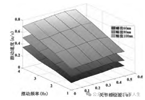 ]) y% `: s! G' d. s1 X 图10 不同摆幅海豚样机速度图 ! W# J2 l/ s& x# G: @% y4 ?/ p" n