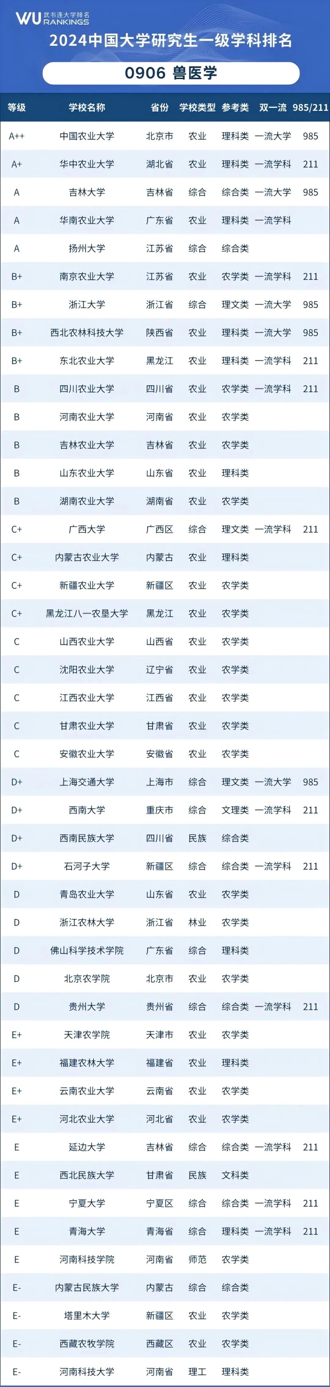 9 [( g! A; f7 j 兽医学一级学科代码0906,共44所高校开设。