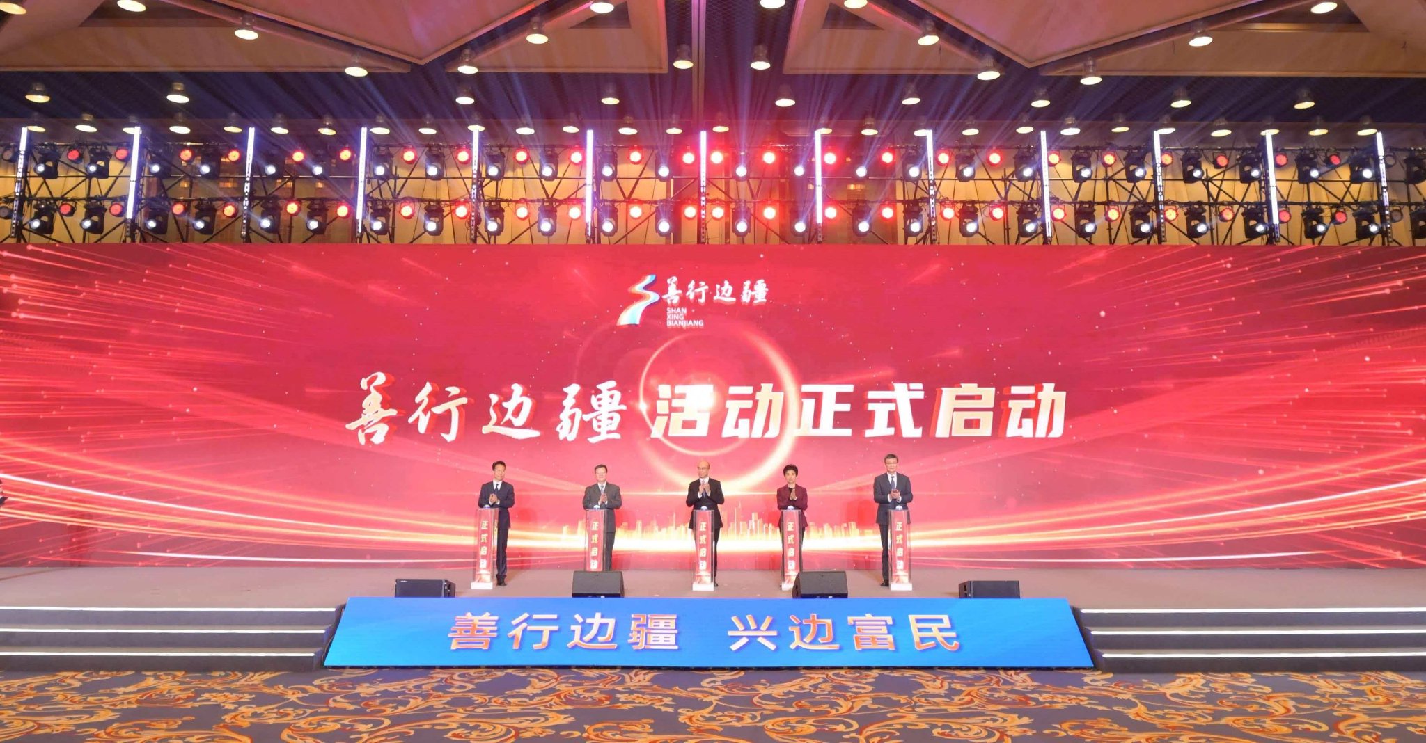 启动仪式上,省委书记许勤、省长梁惠玲和民政部副部长舒惠好、国家民委副主任杨进、中国慈善联合会会长张春生共同按下启动键,标志着活动正式启动。 & J# ]! L$ ]2 B" U