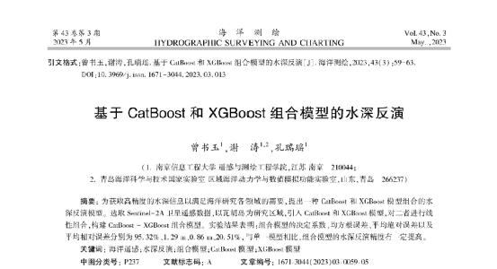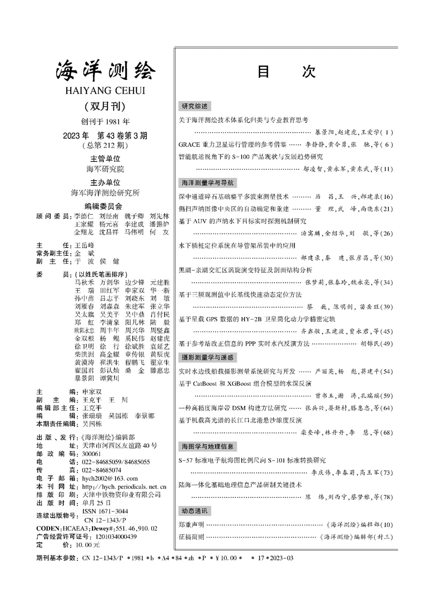 1 i- _6 p1 x) L7 Q 海洋测绘2023第二期 & O' \0 S" l2 \3 D7 |