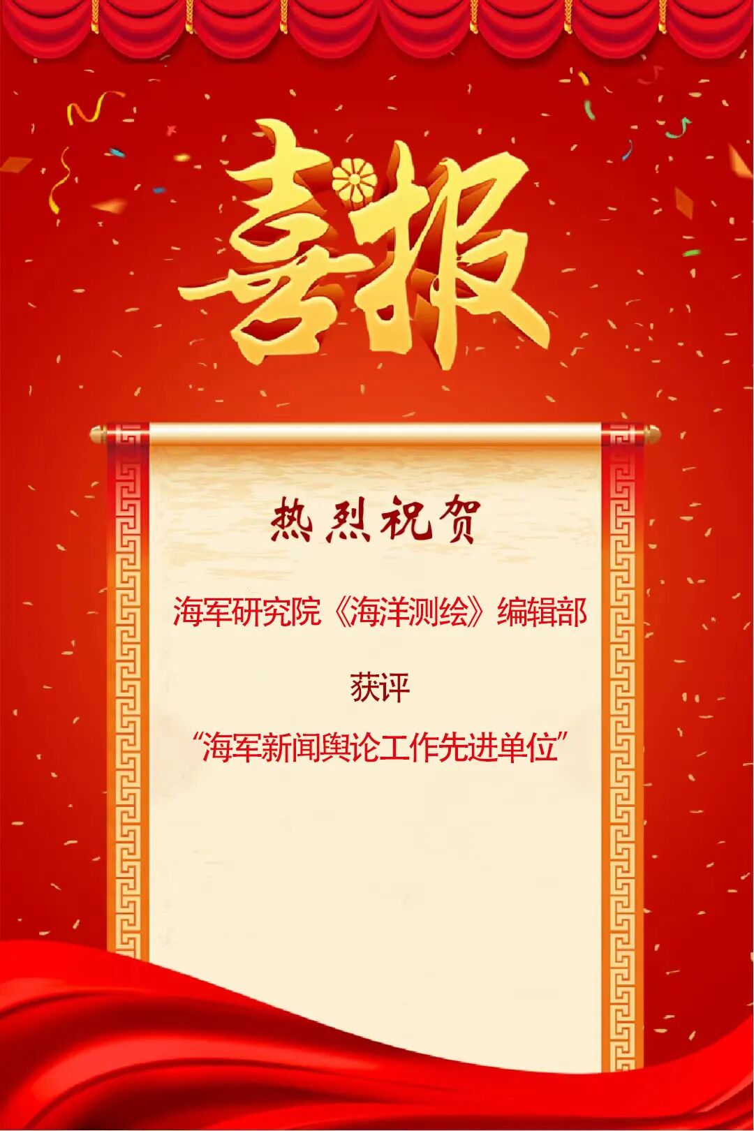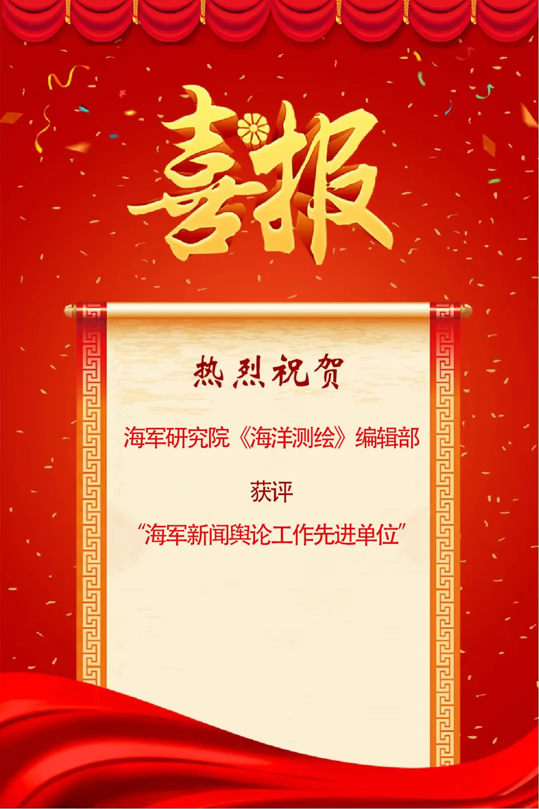 ( R" ?. G+ ]! T# h, \2 j8 k 《海洋测绘》编辑部获评“海军新闻舆论工作先进单位”