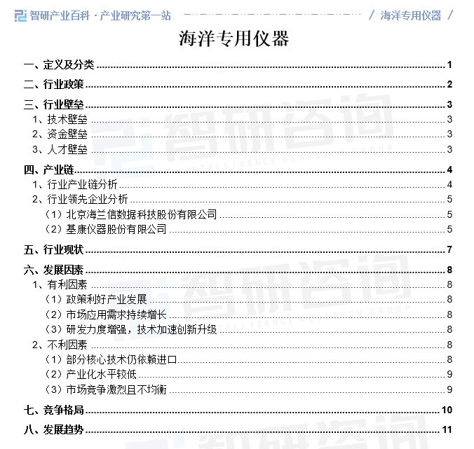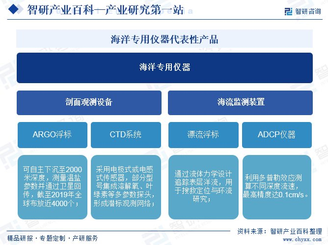 ! s' h A% A) r7 z5 R 智研产业百科是智研咨询推出的产研工具平台,致力于为您提供全方位的百科式产业信息查询服务。智研咨询践行用信息驱动产业发展的企业使命,完善和丰富企业方法论,依托产业百科平台提升信息价值,持续为行业发展及企业投资决策赋能。海洋专用仪器产业百科作为海洋专用仪器产业一站式系统化研究工具,全面归纳了海洋专用仪器产业知识信息,内容涵盖海洋专用仪器产业的定义、分类、政策、产业链、竞争格局、发展趋势等,并依靠信息技术建立智能互链的行业知识图谱,为行研从业者及相关投资者提供深入的洞察力和全面的信息。